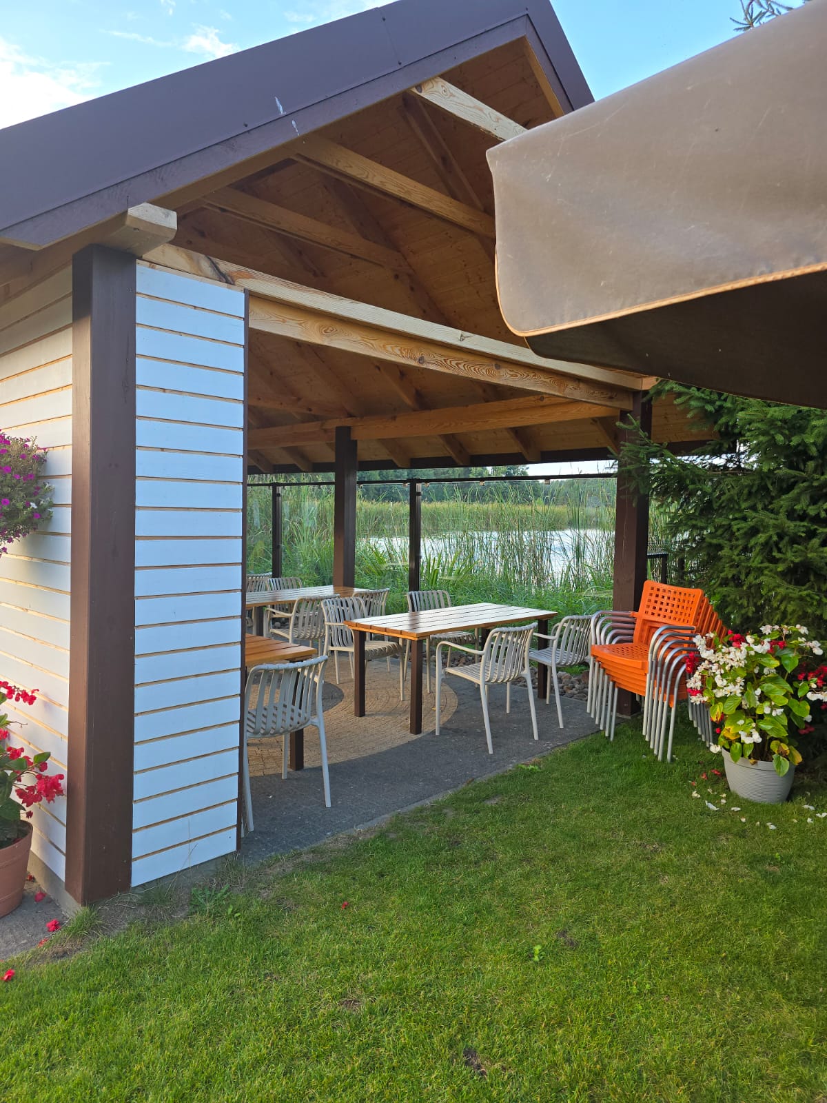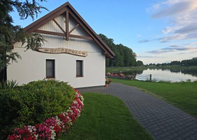 Smażalnia „Rybakówka” powstała, aby nasi Goście wypoczynek nad wodą mogli połączyć z konsumpcją zawsze świeżych ryb. Na początku – w 1999 roku – Rybakówka była drewnianą altaną. Dzisiaj Rybakówka stanowi zamknięty, wychodzący w głąb stawu taras z salą na 50 miejsc, kącik zabaw dla dzieci oraz w pełni profesjonalnie wyposażona duża kuchnia. Kolejne 100 miejsc oraz plac zabaw jest usytuowanych na pięknie ukwieconym brzegu stawu.
